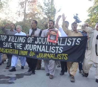 Journalists critical of the state have frequently been victims of enforced disappearance. Imran Riaz Khan, a well-known reporter and anchor, was forcibly taken in May 2023 and remained missing for over four months before being released. Similarly, Ahmad Farhad, a Kashmiri poet and journalist, was abducted in May 2024, allegedly by intelligence agencies, due to his outspoken human rights advocacy. Although later released, both continue to face harassment and legal intimidation, demonstrating the ongoing risk faced by media professionals in Pakistan.